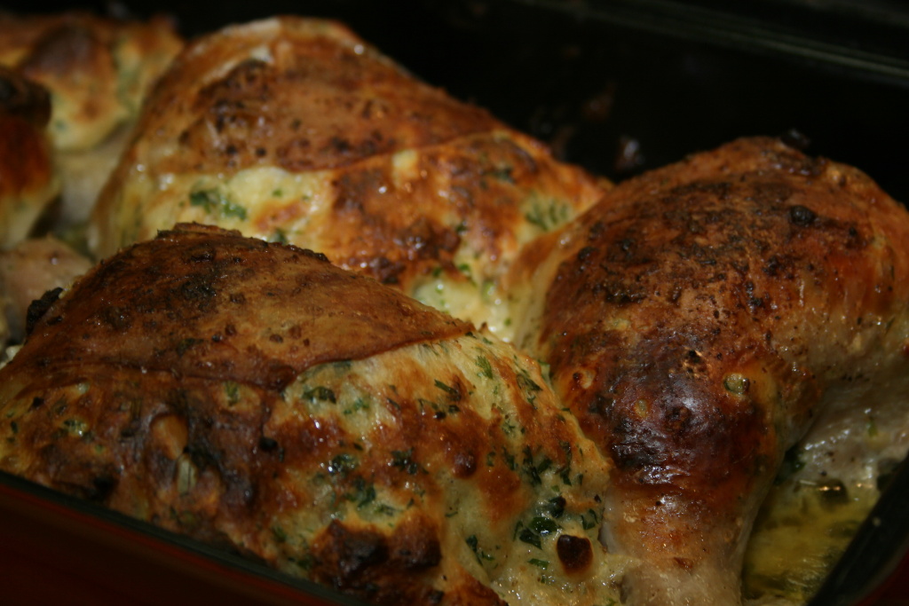 - Kuře osolíme, vložíme do pekáče, posypeme grilovacím kořením, přidáme máslo a slaninu, zalijeme trochou vody a za občasného přelévání výpekem upečeme dozlatova
