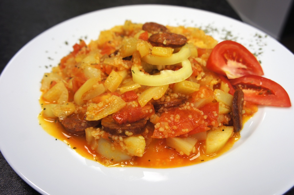 - Ze zeleniny si připravíme lečo, které promícháme s dršťkami