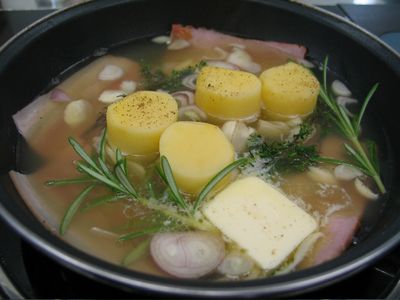 - Přidáme brambory nakrájené na kostičky, provaříme dalších 10 min.