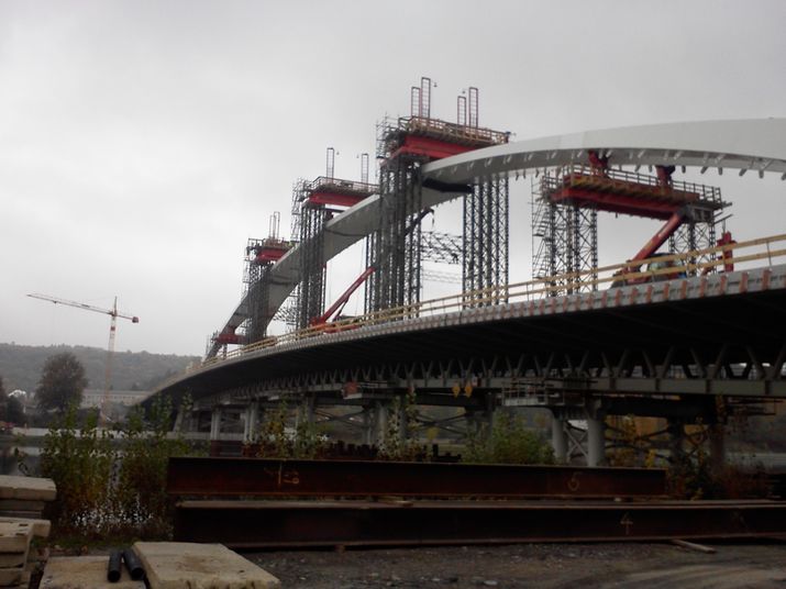„Ty složité operace budou následovat. Svařování oblouku bude trvat další měsíc a pak dál budeme pokračovat montáží šikmých závěsů přes zimu a spouštět most na ložiska na jaře. S tím, že celý most by měl být hotový na konci roku 2013."